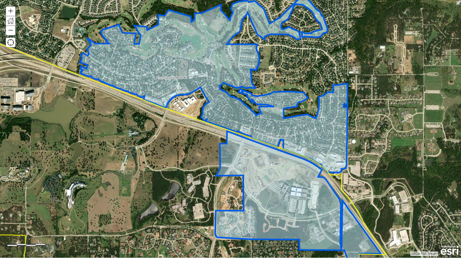 Subdivisions such as Solana, Entrada, Knolls at Solana, and Granada lie within the Trophy Club MUD. The Trophy Club MUD was created back in 1975 to help fund future utility construction within the Town of Trophy Club and portions of the Town of Westlake. The MUD intends to provide water, wastewater treatment, and fire protection to residents/businesses within the district.